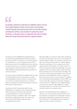 across equity markets which choked off demand from understand their concerns and try wherever possible to the Capital Markets Union, the provision of secondary