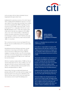 in ESG products with ETFs. Both are irreversible trends enthusiasm yet further. Unsurprisingly prime brokers have and consequently now is the time to help build a more serves on Citi’s global ETF Steering Committee.