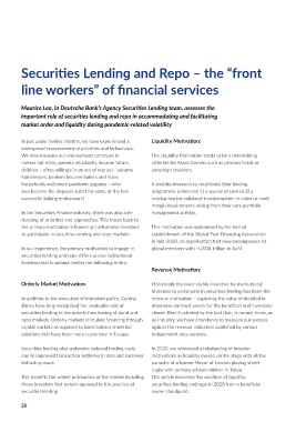 to participate in securities lending and repo markets. establishment of the Global Peer Financing Association In the regulated fund sector, European and US domiciled liquidity against fears that the pandemic would prompt a