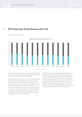 In the last ISLA market report, the post Brexit volume trends Returning to SFTR, the following graph is produced by When we compare the percentage value of reported SLEB Should this trend continue into 2022, it will be interesting