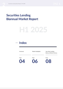 2 Securities Lending Market Report | H1 2025 3 Securities Lending Biannual Market Report H1 2025 Index >>> Foreword Market Highlights Securities Lending Data Our Members Biannual Market Review Methodologies Page Page Page Page Page 04 06 08 24 26